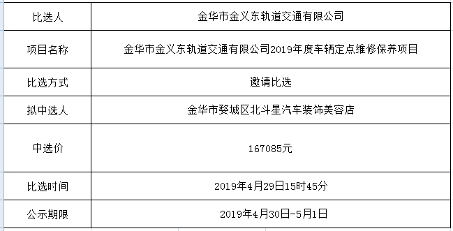 金華市公交集團(tuán)亞運(yùn)村公交首末站裝飾工程施工項(xiàng)目的成交結(jié)果公示