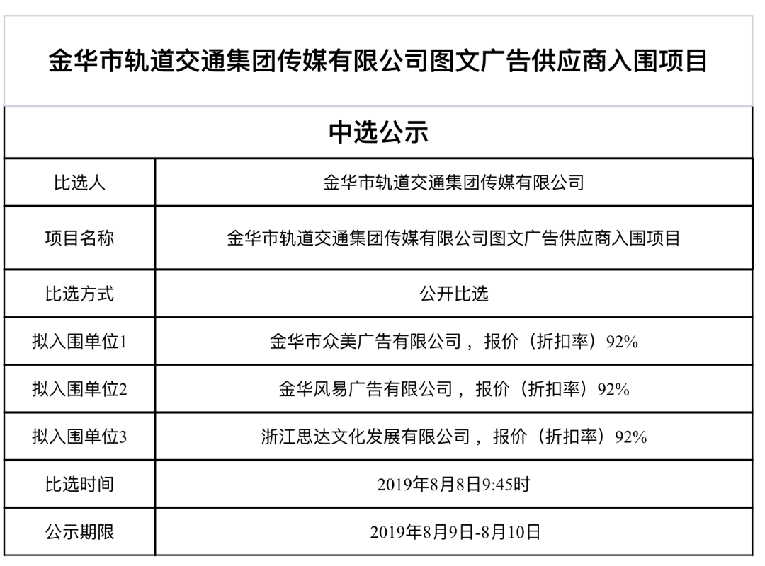 金華市金義東軌道交通有限公司運(yùn)營(yíng)2026-2027年度活動(dòng)實(shí)施服務(wù)機(jī)構(gòu)框架協(xié)議項(xiàng)目中標(biāo)候選人公示