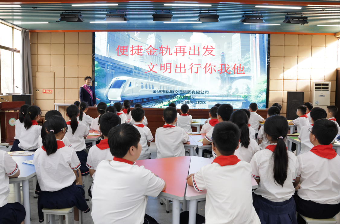 為進(jìn)一步宣傳普及軌道交通乘車知識(shí),增強(qiáng)學(xué)生群體的安全意識(shí),近期,金華軌道交通工作人員走進(jìn)東陽(yáng)橫店二小教育集團(tuán)荊江校區(qū),開(kāi)展“便捷金軌再出發(fā),文明出行你我他”安全宣講活動(dòng)。