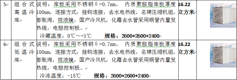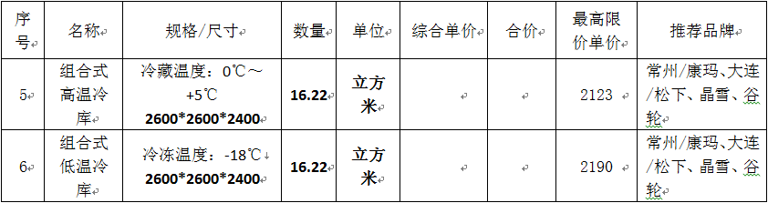 2.塘雅車輛段綜合樓廚房設(shè)備清單報價表中序號5、組合式高溫冷庫以及序號6、組合式低溫冷庫的規(guī)格、數(shù)量及單位進(jìn)行修改,詳見下表: