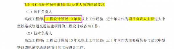 五、問(wèn):招標(biāo)文件中P12頁(yè): 7.對(duì)可行性研究報(bào)告編制團(tuán)隊(duì)及其人員的建議要求: (1)項(xiàng)目負(fù)責(zé)人高級(jí)工程師;工程設(shè)計(jì)領(lǐng)域10年及以上工作經(jīng)驗(yàn);近十年內(nèi)作為項(xiàng)目負(fù)責(zé)人主持過(guò)大中型鐵路或軌道交通基建項(xiàng)目的工程設(shè)計(jì)或咨詢工作。請(qǐng)問(wèn):“近十年內(nèi)作為項(xiàng)目負(fù)責(zé)人主持過(guò)大中型鐵路或軌道交通基建項(xiàng)目的工程設(shè)計(jì)或咨詢工作”中“近十年內(nèi)”可否理解為近十年內(nèi)完工的項(xiàng)目?