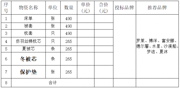 致:各參選人 比選人現(xiàn)將參選人提出的問(wèn)題及招標(biāo)文件需要澄清、修改、補(bǔ)遺、答疑的內(nèi)容,統(tǒng)一答復(fù)你們,請(qǐng)認(rèn)真研究。本次澄清、修改、補(bǔ)遺、答疑若與招標(biāo)文件不一致之處,以本次補(bǔ)充文件為準(zhǔn)。一、問(wèn):報(bào)價(jià)明細(xì)表中有推薦品牌,其他品牌是否可以參與? 推薦品牌均為家紡產(chǎn)品的品牌,而貴公司所需產(chǎn)品均為酒店布草產(chǎn)品,與家紡產(chǎn)品存在差異,且一般酒店布草的同質(zhì)量產(chǎn)品在技術(shù)標(biāo)準(zhǔn)上均優(yōu)于甲方產(chǎn)品。建議貴公司可以放開(kāi)參與品牌的范圍,允許類似我司這樣的專業(yè)酒店布草生產(chǎn)廠家參加。答:甲方推薦品牌的,供貨產(chǎn)品品牌須在技術(shù)需求中推薦品牌范圍內(nèi)或相當(dāng)于(或優(yōu)于)推薦品牌。